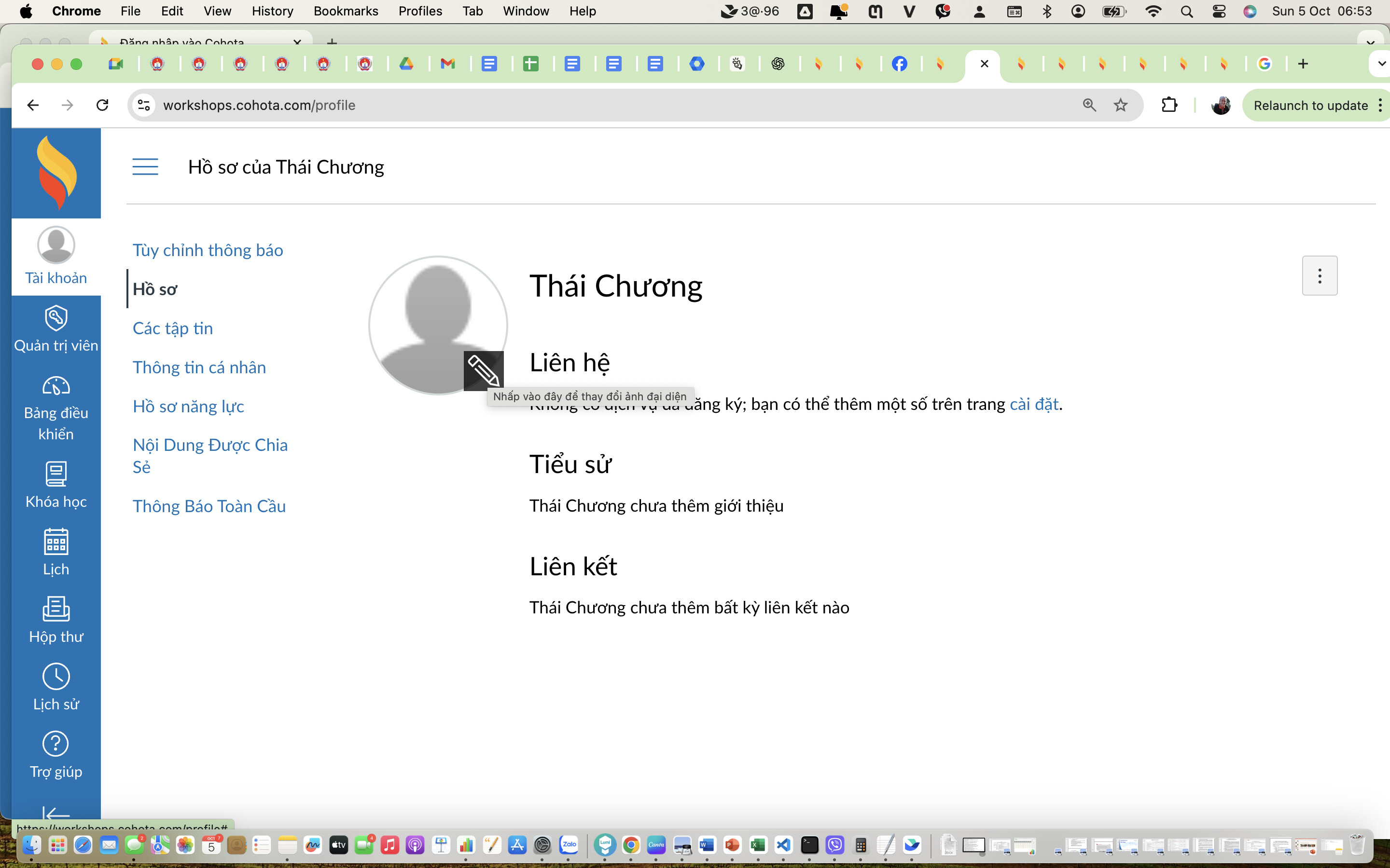 Sau khi bật cửa sổ thay đổi hình profile sẽ được hiển thị trong mục hồ sơ của mỗi người dùng